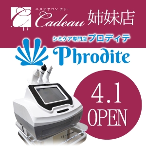 姉妹店オープン エステサロンカードーの姉妹店、シミケア専門店プロディテがOPENしました。 シミ取り以外にも、脂肪分解美容液レモンボトル導入も可能です。 シミケア専門店プロディテ https://phrodite-care.com/
